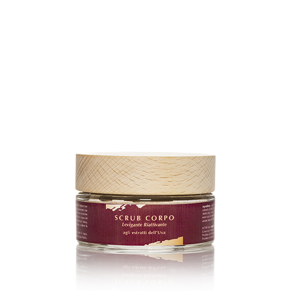 Lo scrub corpo con microgranuli di vinaccioli e olio di vinaccioli da agricoltura biologica agisce con una delicata azione abrasiva che favorisce l’asportazione di cellule morte, impurità e ispessimenti che soffocano la pelle. Indicato per pelli grasse acneiche e asfittiche, purifica la pelle con un’azione levigante, detossinante rivitalizzante. Grazie ai potenti antiossidanti presenti nell’olio di vinaccioli contrasta in modo completo ed efficace l’azione dei radicali liberi, lasciando la pelle più fresca, distesa e luminosa.
